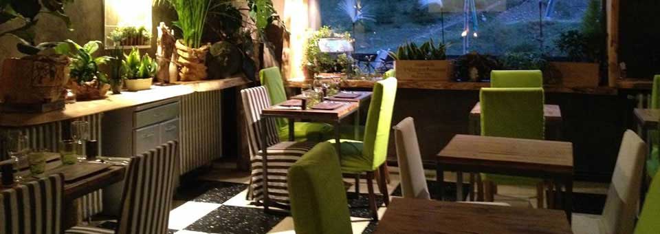Das Ambiente: Auf unseren circa 20 Stühlen nehmen regelmäßig Stammgäste, Freunde und Naturliebhaber Platz. Das Team: Eine Hand voll junger Mitarbeiter, freundlich und herzlich à la "New Age", kümmern sich rundum um Ihre Ankunft und den Service während Ihres Aufenthaltes. Wir raten Ihnen, unbedingt vorher Ihren Tisch zu reservieren. FÜR PERSONEN MIT EINGESCHRÄNKTER MOBILITÄT GIBT ES KEINEN ZUGANG.